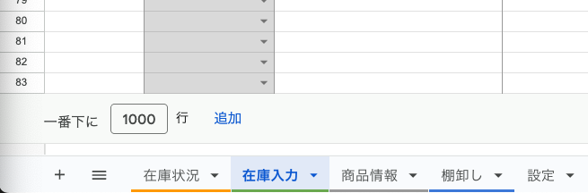 入力行が足りなくなった場合は、シート下部の「さらに1000行追加」をクリックして増やせます。
